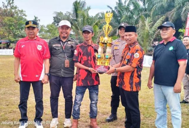 TANJABBAR – Ketua Dewan Perwakilan Rakyat Daerah (DPRD) Kabupaten Tanjung Jabung Barat (Tanjab Barat), Hamdani, S.E, menghadiri kegiatan Pembukaan Open Tournament Sepakbola Pemuda Pancasila Grassroot Football Festival U-10 & U-12 yang digelar di Desa Teluk Pengkah, Kecamatan Tebing Tinggi, Sabtu (8/11/2025) pagi.