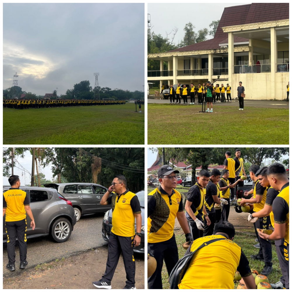 JAMBI - Polda Jambi menggelar gotong royong melakukan aksi bersih bersih di sekitar Lapangan Eks MTQ, Kota Jambi, Jumat (6/2/26). Kegiatan ini melibatkan ribuan personil Polda Jambi dari seluruh satuan, dipimpin langsung Kapolda Jambi Irjen Pol Krisno H Siregar.