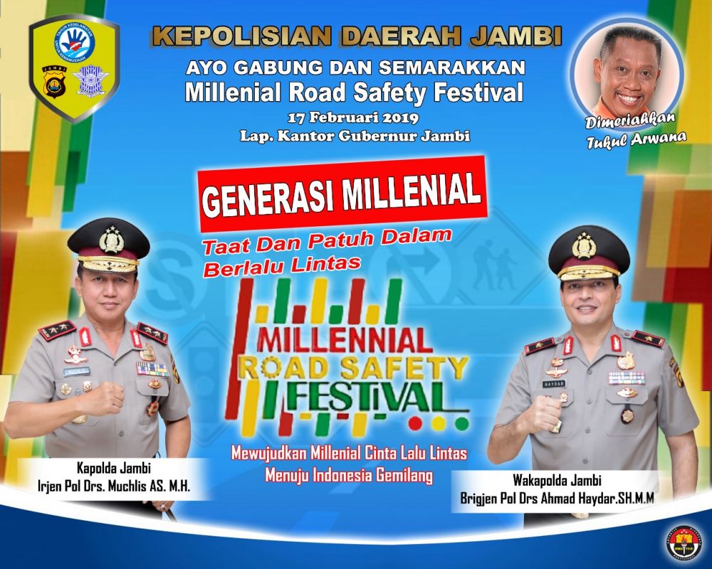 JAMBI - Secara Nasional, Polri menyelenggarakan kegiatan Millenial Road Safety Festival ( MRSF ) yang dimulai tanggal 2 Februari sampai dengan 31 Maret 2019 di 34 Provinsi.