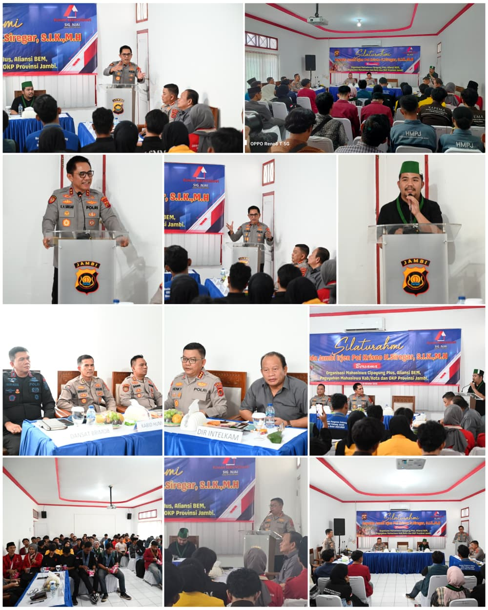 Hal ini disampaikan Kapolda Jambi Irjen Pol Krisno H. Siregar S.I.K., M.H., saat menggelar silaturahmi dengan Organisasi Mahasiswa Cipayung Plus, Aliansi BEM, Paguyuban Mahasiswa dan OKP Provinsi Jambi di Rumah Kebangsaan Siginjai, Kamis (16/10/25).