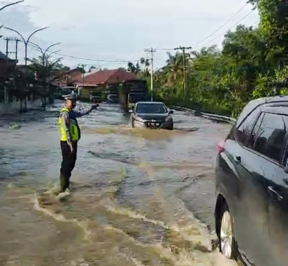 Saat ini, personel gabungan masih terus berjaga di titik genangan untuk mengatur sirkulasi kendaraan agar tidak terjadi penumpukan yang panjang.(*/Habsy/nik)