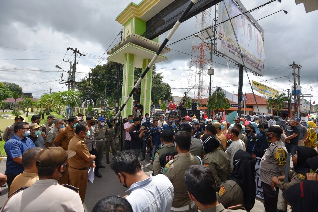 TAPSEL - Walikota Padangsidimpuan menerima aksi unjuk rasa Satma AMPI Kota Padangsidimpuan terkait penolakan berdirinya toko modern di Kota Padangsidimpuan yang dinilai mematikan usaha pelaku UMKM, Selasa (1/12).
